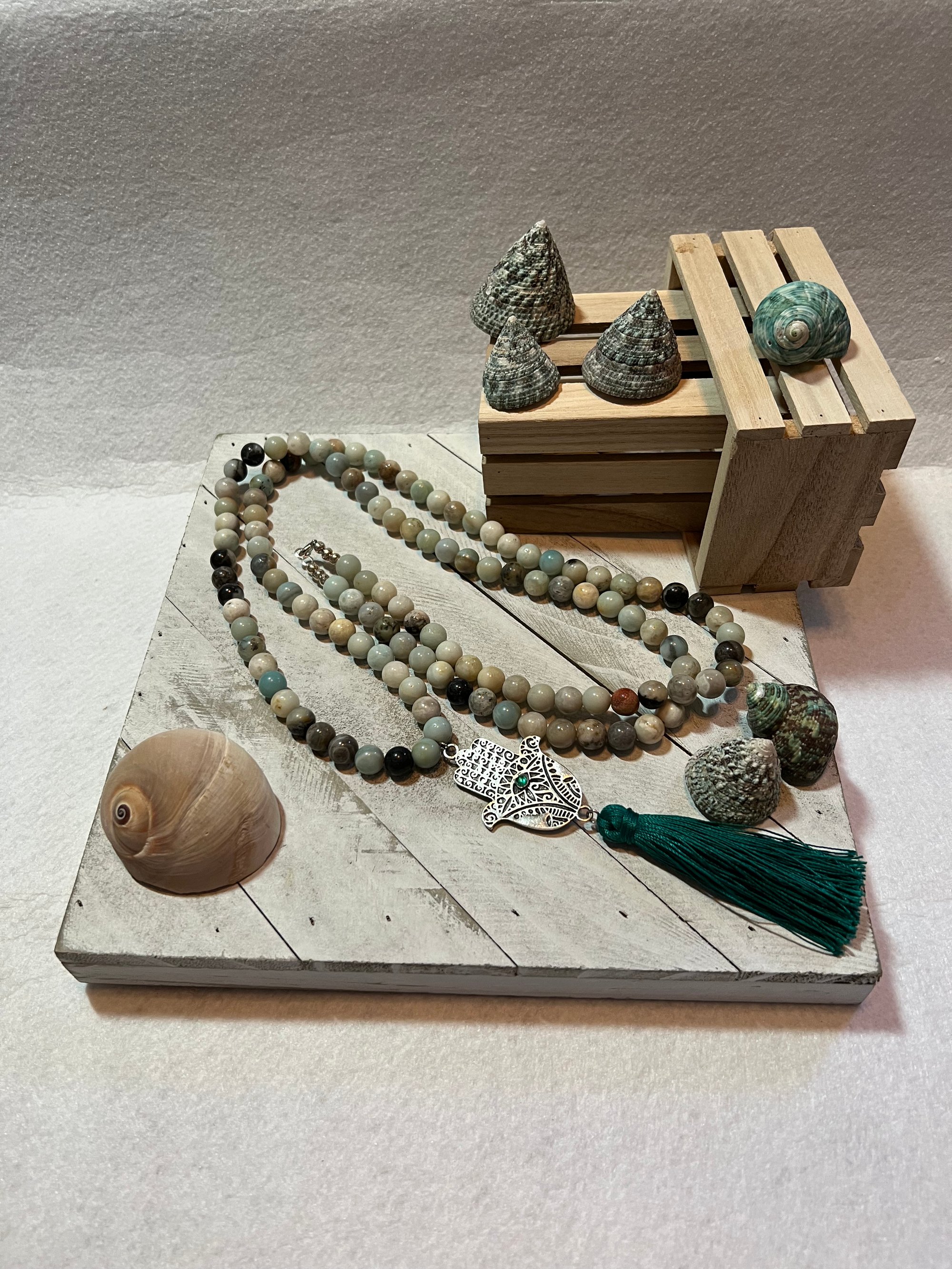 Amazonite and White Metal Tassel