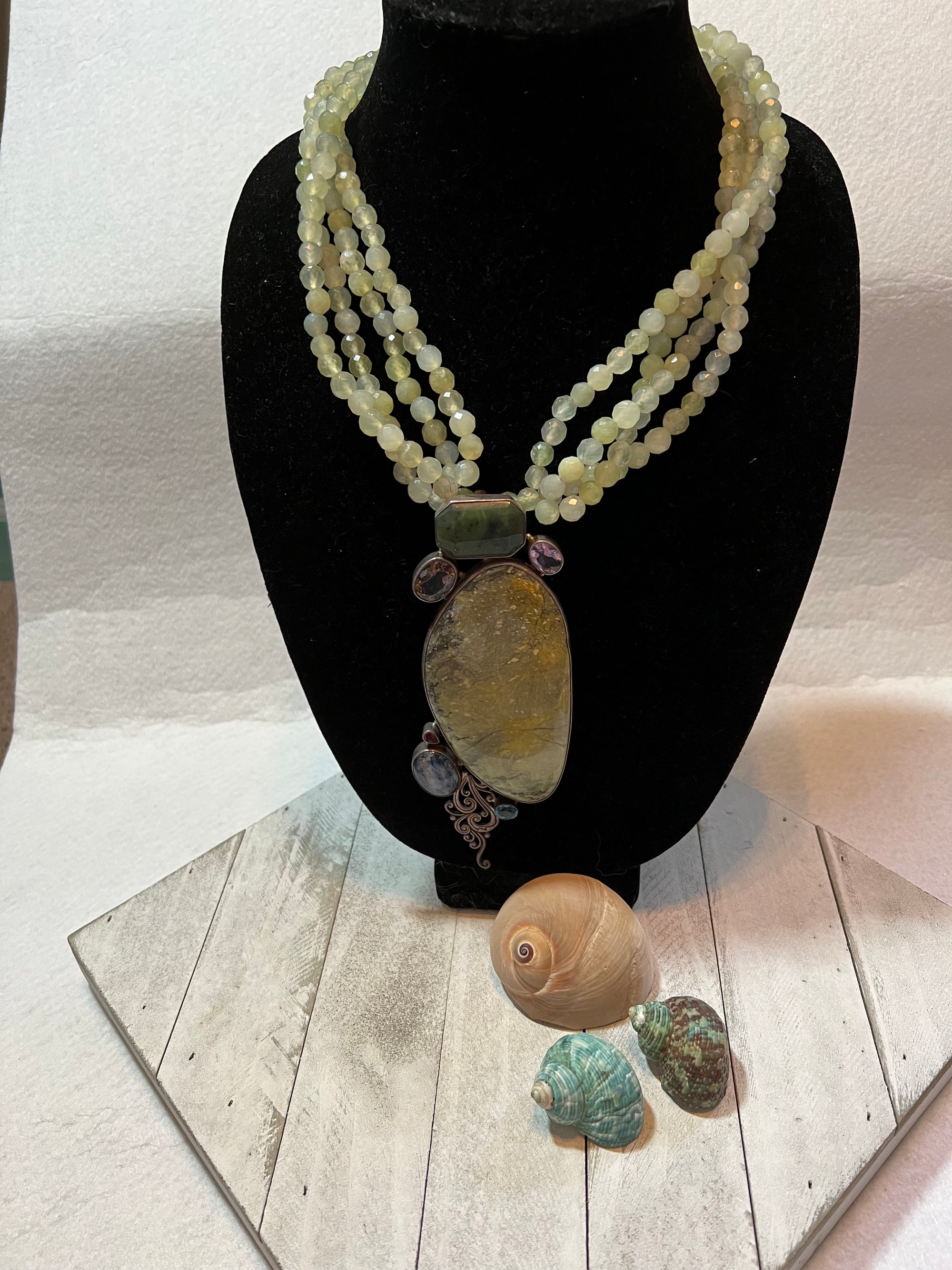 Multi Layer Agate Necklace With Sterling Silver Charm