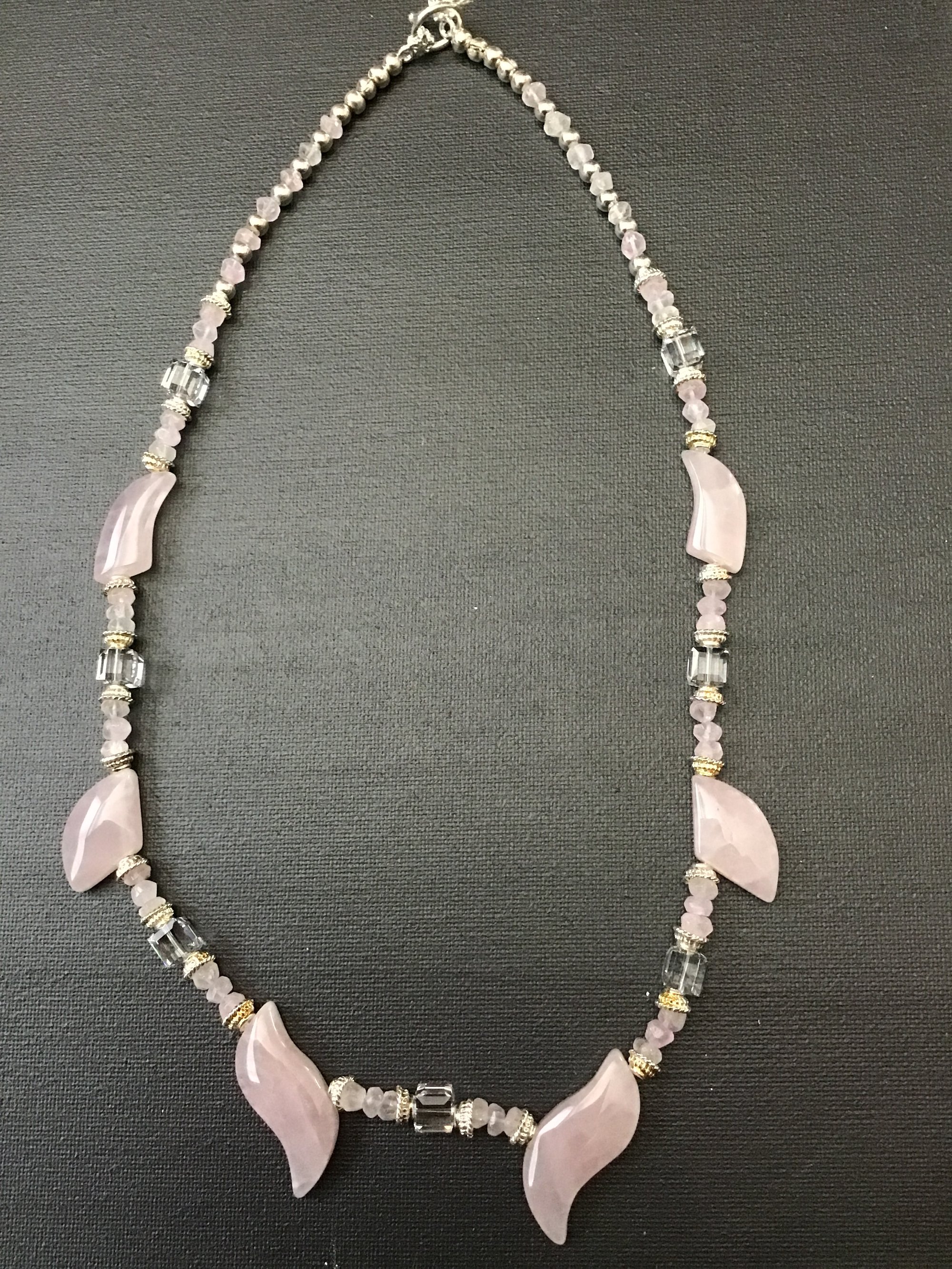 Rose quartz and Swarovski crystals 18 inches